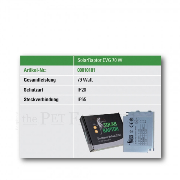 Das EVG 70 Watt ist komplett anschlussfertig und mit den beliebten Verbindungssteckern versehen. Es kann an jede Terrarienfassung angeschlossen werden.