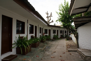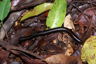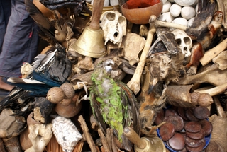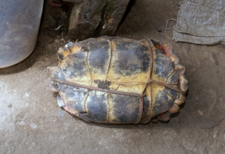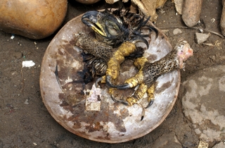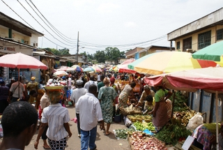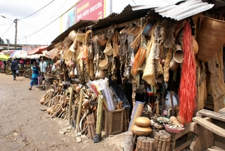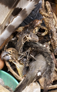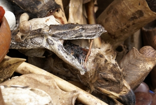 Libreville – die Hauptstadt Nach 6 Stunden Flug von Paris aus erreichte die Expedition den Flughafen der gabunischen Hauptstadt Libreville. Beim Verlassen des Airports „erschlug“ uns die Temperatur von 30 Grad Celsius und vor allen Dingen die 96 Prozent Luftfeuchtigkeit. In der Nähe des kleinen Hotels, in dem wir in den nächsten 2 Tagen untergebracht waren, konnten wir auch gleich die ersten Reptilien finden. Die Siedleragame war in den verschiedensten Größen und am zahlreichsten vetreten. Geckos der Gattung Hemidactylus bevölkerten nach Einbruch der Dunkelheit die Wände und Mauern. Nun kamen auch Kröten (Bufo regularis) zum Vorschein. Am nächsten Tag besuchten wir den riesigen Markt und fanden einen Stand, an dem fast alles verkauft wurde, was uns interessiert, allerdings in getrockneter und „leicht“ riechender Form. Durch das Fotografieren geraten wir allerdings in arge Schwierigkeiten und müssen abbrechen. Im besten Lokal Librevilles machen wir Rast. Die Speisekarte enthält jede Menge Bushmeet-Gerichte z. B. Krokodil, Python, Stachelschwein, Antilope und noch viel mehr leckere Gerichte.