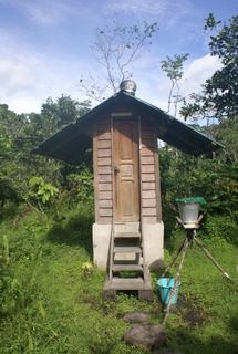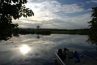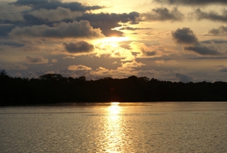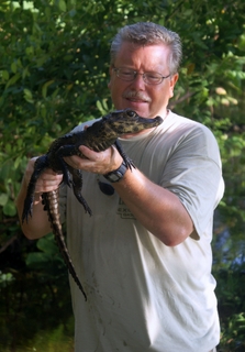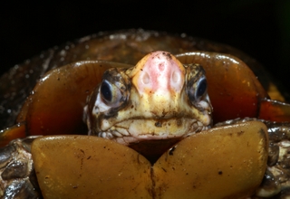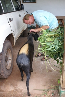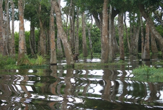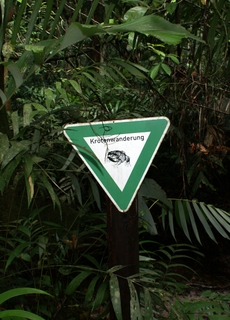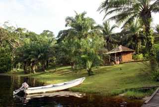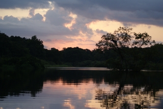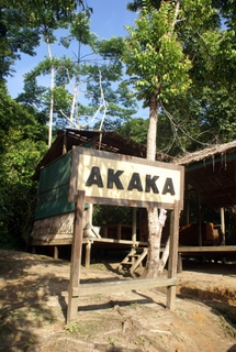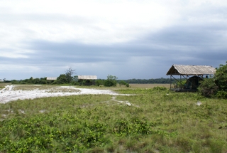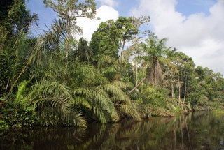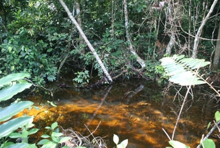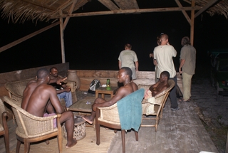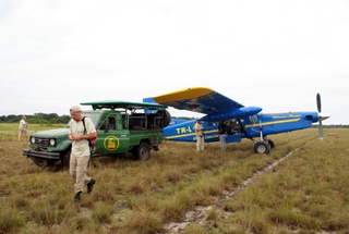 Akaka-Camp Am nächsten Tag beginnt die eigentliche Expedition. Wir fliegen mit einer kleinen Pilatus-Maschine direkt nach Iguela und landen dort mitten in der nach heftigen Regenfällen überfluteten Savanne. Unser Pilot Rick ist Amerikaner und etwas seltsam. Später erfahren wir, dass er manchmal ohne ersichtlichen Grund ohnmächtig wird und umfällt. Wir laden das Gepäck auf einen Anhänger und machen mit einem Geländewagen eine erste Safari. Wir bekommen viele Vögel, Waldelefanten, Waldbüffel und Affen zu Gesicht. Die Waldelefanten hier sind viel kleiner und dunkler als ihre Artgenossen in Ostafrika. Sie sind äußerst gefährlich, denn wenn ein Waldelefant einmal angreift, will er meistens auch zerstören oder sogar töten. Nach einer Übernachtung in der Loango Lodge, wo wir morgens früh von einem großen Schwarm Graupapageien begrüßt werden, erreichen wir nach 2½-stündiger Fahrt mit einem Boot unser erstes Camp mit Namen Akaka. Dieses Camp liegt direkt im Dschungel am Ufer der Lagune und ist ziemlich heruntergekommen, aber der Blick auf die Lagunenlandschaft ist fantastisch. In den nächsten Tagen finden wir enorm viele Tiere. Wir sehen viele Frösche, Klappbrustschildkröten, alle drei in Afrika vorkommenden Krokodilarten, Geckos, Gürtelechsen, Schlangen, Warane, viele Vögel und Säugetiere. Die besten Funde liefern regelmäßige Exkursionen bei Nacht, die allerdings nicht ganz ungefährlich sind, da in diesem Gebiet auch Leoparden leben. Auch Waldbüffel und die nachts an Land kommenden Hippos sind mit Vorsicht zu genießen. Bei einem nächtlichen Ausflug mit dem Boot gelingt es uns mit Körpereinsatz und Taschenlampe ein Zwergkrokodil zu fangen. Während des Aufenthaltes im Camp fange ich so nebenbei auch noch ein paar interessante Aquarienfische wie Hechtlinge, Leuchtaugenfische, Fünffleckbuntbarsche, Buschfische, Salmler und Welse. Tagsüber machen uns die lästigen Tse Tse Fliegen zu schaffen, nachts fressen uns Schwärme von Mosquitos auf.