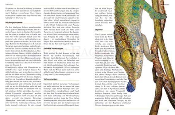 „Chamäleons, Drachen unserer Zeit“. Schon der Titel weist auf die Urümlichkeit dieser oft bizarr geformten Reptilien hin. Wer kennt sie nicht, die ungewöhnlichen Tiere mit dem ausgeprägten Farbwechselvermögen und der langen, klebrigen Zunge! Doch sind das nicht die einzigen Besonderheiten der Chamäleons.