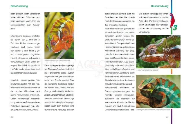 Chamäleons erinnern in ihrem Äußeren an scharfsichtige urzeitliche Drachen. Sie wechseln je nach Umgebung ihre Färbung, ahmen Blätter und Äste nach und verändern sogar die Silhouette Ihres Körpers. Panther-Chamäleons sind sehr beliebte Terrarien-Tiere. Neben vielen Informationen zu Haltung und Zucht zeigt Ihnen dieses Buch Möglichkeiten einer „offenen Zimmerhaltung“ sowie einer naturnahen Freilandhaltung im Garten. Lassen Sie sich in eine faszinierende Welt aus Farben, Formen und Besonderheiten des Verhaltens dieser Art einladen.