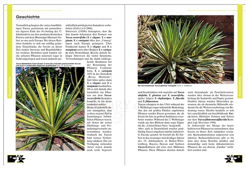 Die Autoren stellen alle bislang bekannten „buntblättrigen“ Formen und Sorten aus der Gattung Yucca vor und geben fundierte Tipps für ihre Kultur in Mitteleuropa. Zahlreiche Farbfotos präsentieren auf eindrucksvolle Weise die Vielfalt sowie den ornamentalen Charakter dieser besonderen Pflanzen.