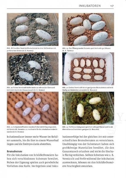 Das Buch gibt einen umfassenden und aktuellen Überblick zur Inkubation von Eiern von über 200 in Menschenobhut vermehrten Land- und Wasserschildkrötenarten bzw. -unterarten. Für die mehr als 200 Tabellen mit Angaben zu Gelegegrößen, Bruttemperaturen, Luftfeuchtigkeit, Inkubationsdauer sowie zu verwendeten Brutapparaten und -substraten wurden zahlreiche Publikationen aus mehreren Jahrzehnten sowie bisher unveröffentlichte Zuchtdaten von Schildkrötenfreunden ausgewertet. Zudem geht das Buch ausführlich auf geeignete Inkubatoren, Brutsubstrate und die Geschlechtsfixierung ein.