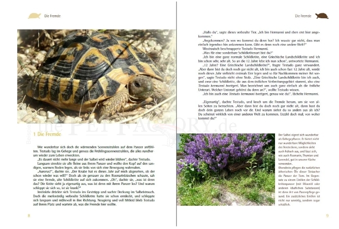 Bereits die Geschichte von Testudo und Hermanni enthält einige – mehr oder weniger versteckte – Informationen zur naturnahen Schildkrötenhaltung, die der Autorin Christine Dworschak eine Herzensangelegenheit sind. Sie gibt den Tieren eine Stimme und beinahe menschliche Gefühle. Gestärkt werden diese Aspekte durch geeignete Fotos mit ausführlichen Bildunterschriften.