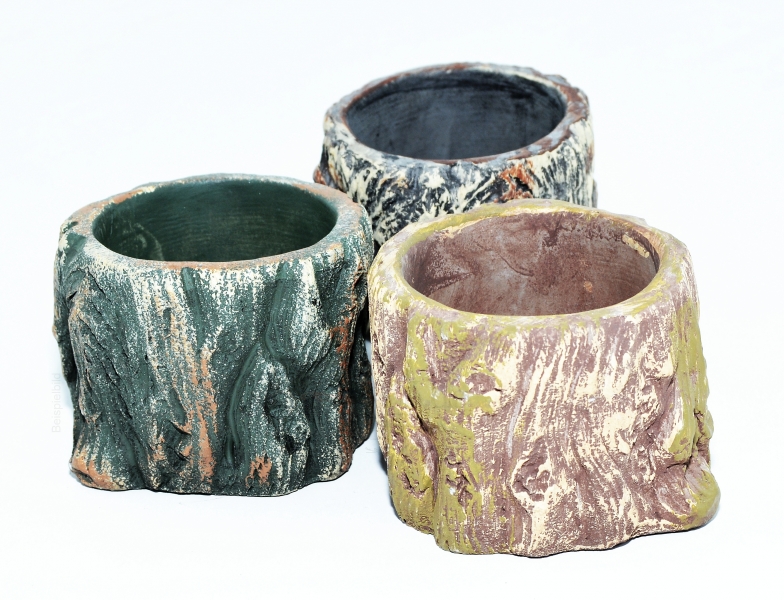 Dekorativer Übertopf in Wurzeloptik für unsere Pflanzen im 6 cm Topf.