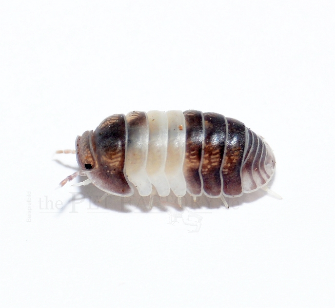 Die Grundfarbe ist braun. Ab dem 2. Segment bis zum 4. Segment ändert sich die Farbe in ein Cremeweiß. Die Beine und Antennen sind bei dieser Art auch komplett Cremeweiß gefärbt. Diese Farbkonstellation verleiht der Assel den Namen “Panda King”. Cubaris spec. “Panda King” lebt in tropischen Gebieten in Vietnam. Daher sollte eine Luftfeuchtigkeit von 75-85% eingehalten werden. Um die Feuchtigkeit zu halten, kann man das Substrat mit Laub, Moos, Rinde oder ähnlichem abdecken. Bei Cubaris spec. “Panda King” kann man auf eine Kaminbelüftung oder generell großflächig angelegte Belüftungen verzichten. Als Futter dient sowohl das im Substrat enthaltene organische Material.