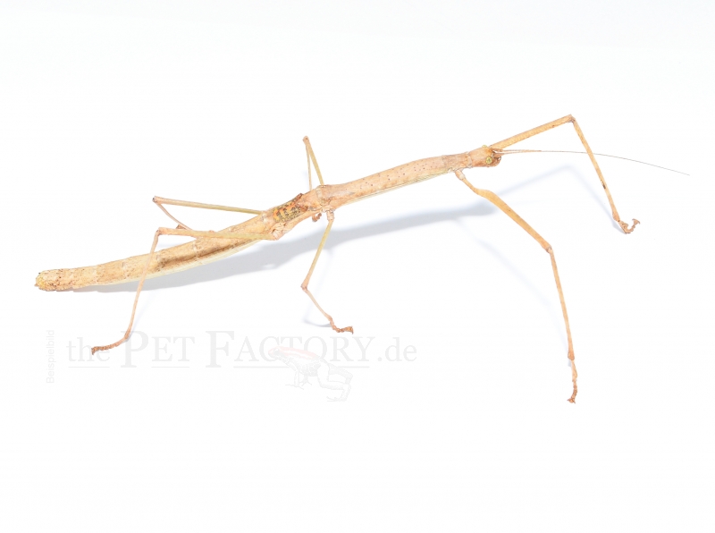 Bei der bisher nur parthenogenetisch bekannten Fortpflanzung legen die Weibchen schwarzgraue, seitlich leicht abgeplattete Eier. Diese sind etwa 3,5 mm lang, 2,7 mm breit und 3,1 mm hoch. Nach durchschnittlich vier Monaten schlüpfen die Nymphen, welche nach weiteren fünf Monaten zu adulten Weibchen heranwachsen. Bei Störung zeigen die Tiere umfangreiches Verhaltensrepertoire. So können sie in gestreckter Haltung zur möglichst optimalen Phytomimese verharren, ergreifen aber bei Berührung meist schnell die Flucht. Sie sind einfach zu halten, ideal auch für Anfänger.