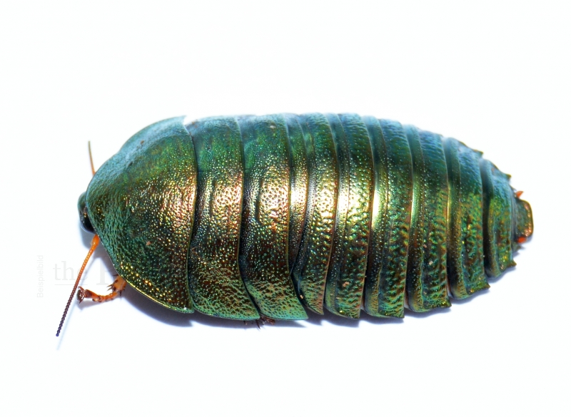 Pseudoglomeris magnifica oder auch Smaragdschabe ist eine grün schimmernde wunderschöne Schabenart aus Vietnam, die es auch noch nicht allzu häufig im Hobby gibt. Es handelt sich im Zierschaben, die in einem schön eingerichteten Terrarium richtig etwas hermachen. Frisch gehäutete Tiere haben eine rote Färbung. Kleine Nymphen brauchen etwa 6-9 Monate zur Geschlechtsreife und nach der Verpaarung kann es 4-6 Monate dauern bis das Weibchen Junge bekommt. Diese bleiben bis zur ersten Häutung an der Unterseite des Weibchens. Eine Aufzucht von Tieren in unterschiedlichen Größen ist absolut kein Problem.