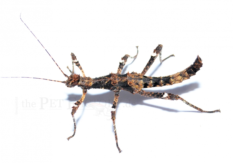 Siliquifera grandis (Blanchard, 1853) Riesen-Blattschrecke Zu erwartende Endgröße: 12 cm Herkunft: Tropisches Asien, Neuguinea, Nordaustralien Temperatur: Substrat- und Lufttemperatur 20-28 °C Substrat: Terrariensand Aktivitätszeit: tagaktiv Futter: Blätter von Brombeere, Himbeere, Obst, Fischfutter Luftfeuchte: 60-80% Preis für 1 Tier (VPE)