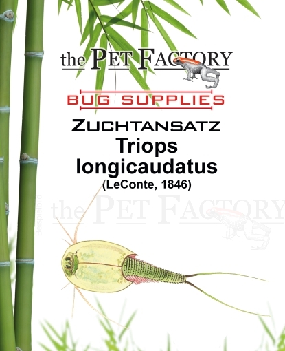 Triops longicaudatus hat sein natürliches Verbreitungsgebiet in Amerika und kann bis zu 7 cm groß werden. Die Tiere benötigen weiches, schadstoffarmes, 25 - 28°C warmes Wasser. Zwei Tage nach dem Schlupf der Nauplien können die Tiere gefüttert werden. Das Aquarium sollte täglich 8- 12 Stunden beleuchtet werden. Als Einrichtung empfiehlt sich feiner Sand, Seemandelbaumblätter, sowie kleine Steine. Triops buddeln oft und gerne im Sand.