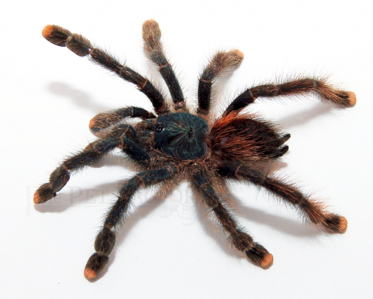 Avicularia metallica gehört zu den beliebtesten und friedlichsten Vogelspinnen. Sie besticht durch eine äußerst ansprechende Färbung. Die Grundfarbe des Hinterleibes der Avicularia metallica ist tiefschwarz. Ebenfalls schwarz ist auch die Behaarung des Hinterleibes. Er weist kein einziges rotes Haar auf. Das hintere Beinpaar ist bei einer leicht weißlichen bis hellgrauen Behaarung ebenfalls schwarz. DerVorderleib sowie die übrigen Beine schimmern blaumetallisch, was Avicularia metallica den Namen gibt.