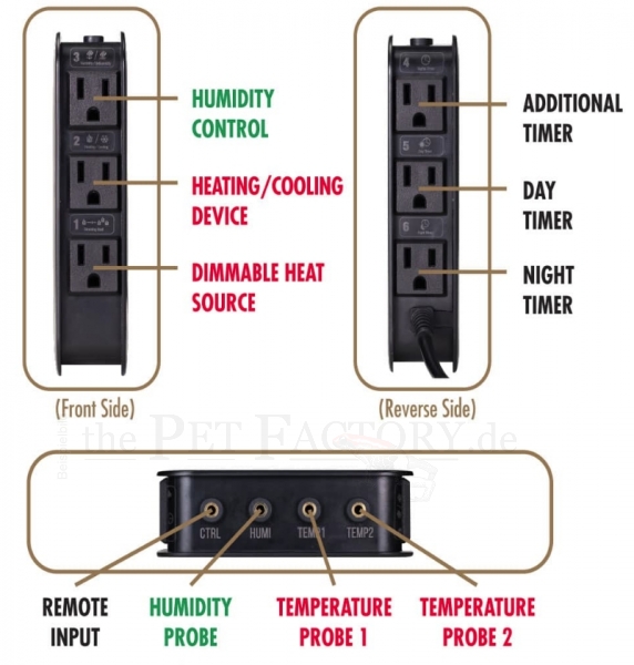 • Kompatibel mit: Wärmelampen, MVB, CFL, T8, T5, Halogen, LED, CHE, UTH, Sprühanlagen, Vernebler und mehr!
